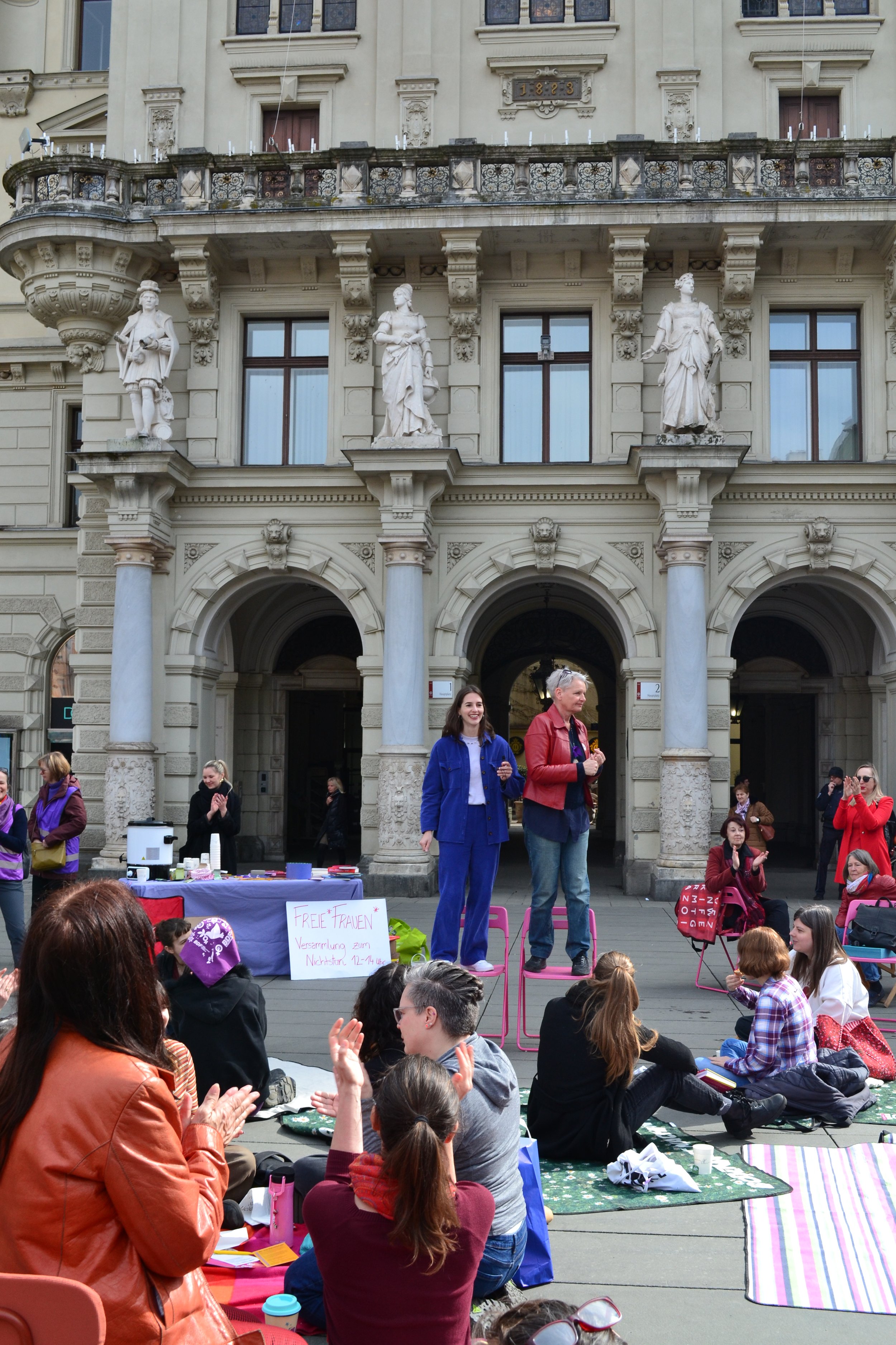 Frauen haben ihre Arbeit niedergelegt – Versammlung zum „Nichtstun“ am Grazer Hauptplatz